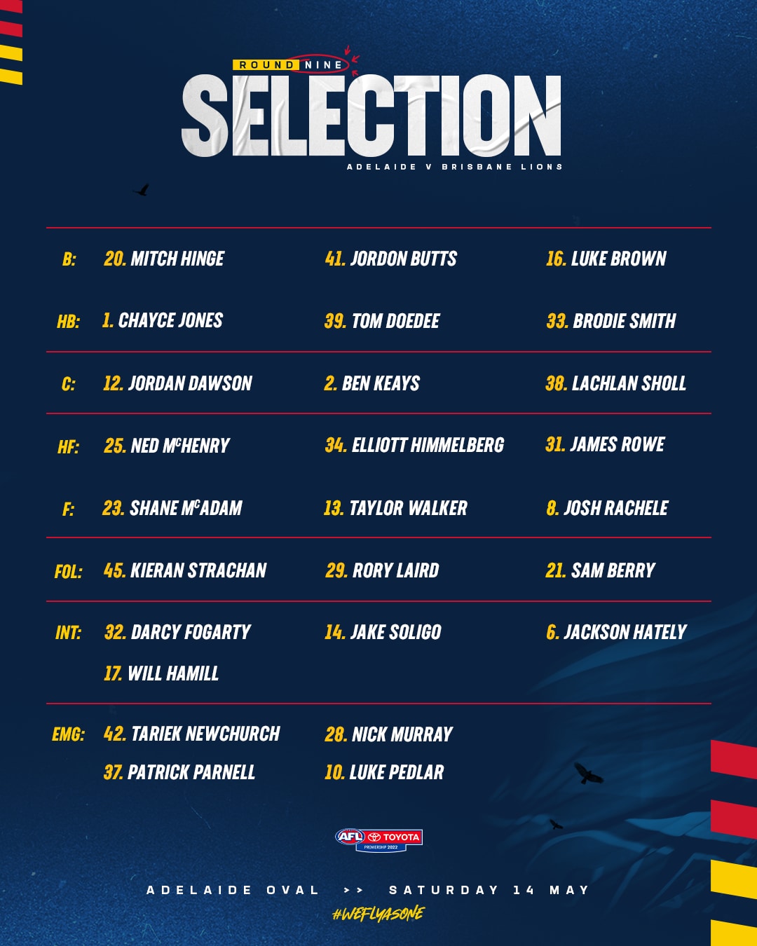 Crows Head of Football Adam Kelly said the high number of changes was a combination of form and availability.