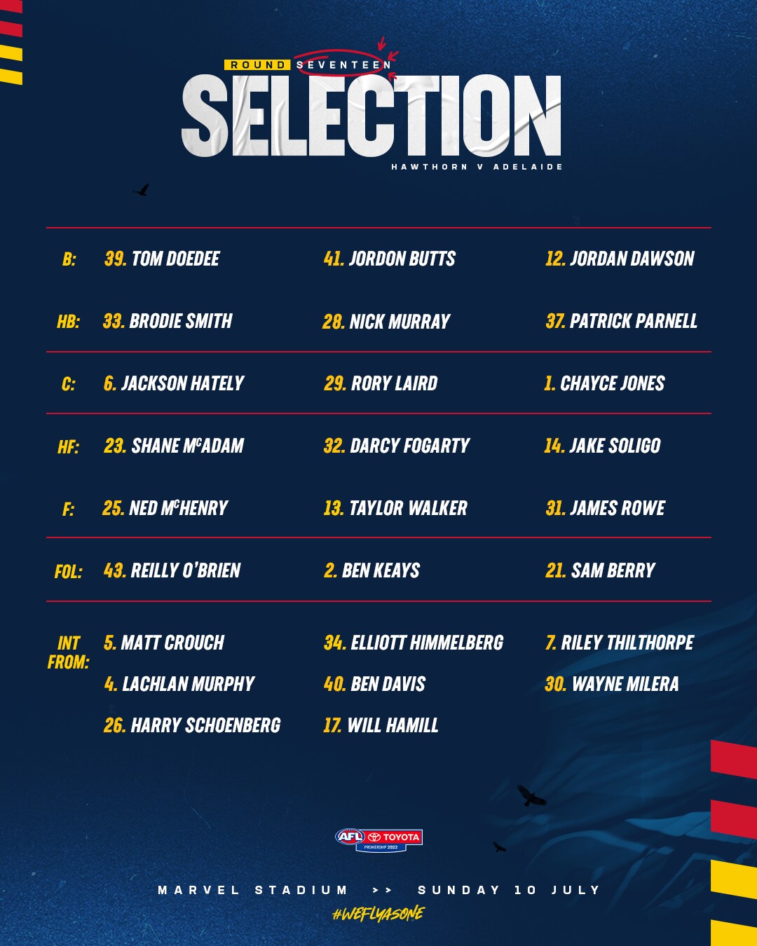 Adelaide’s final 22-man team will be announced on Friday afternoon at 4.30pm ACST.