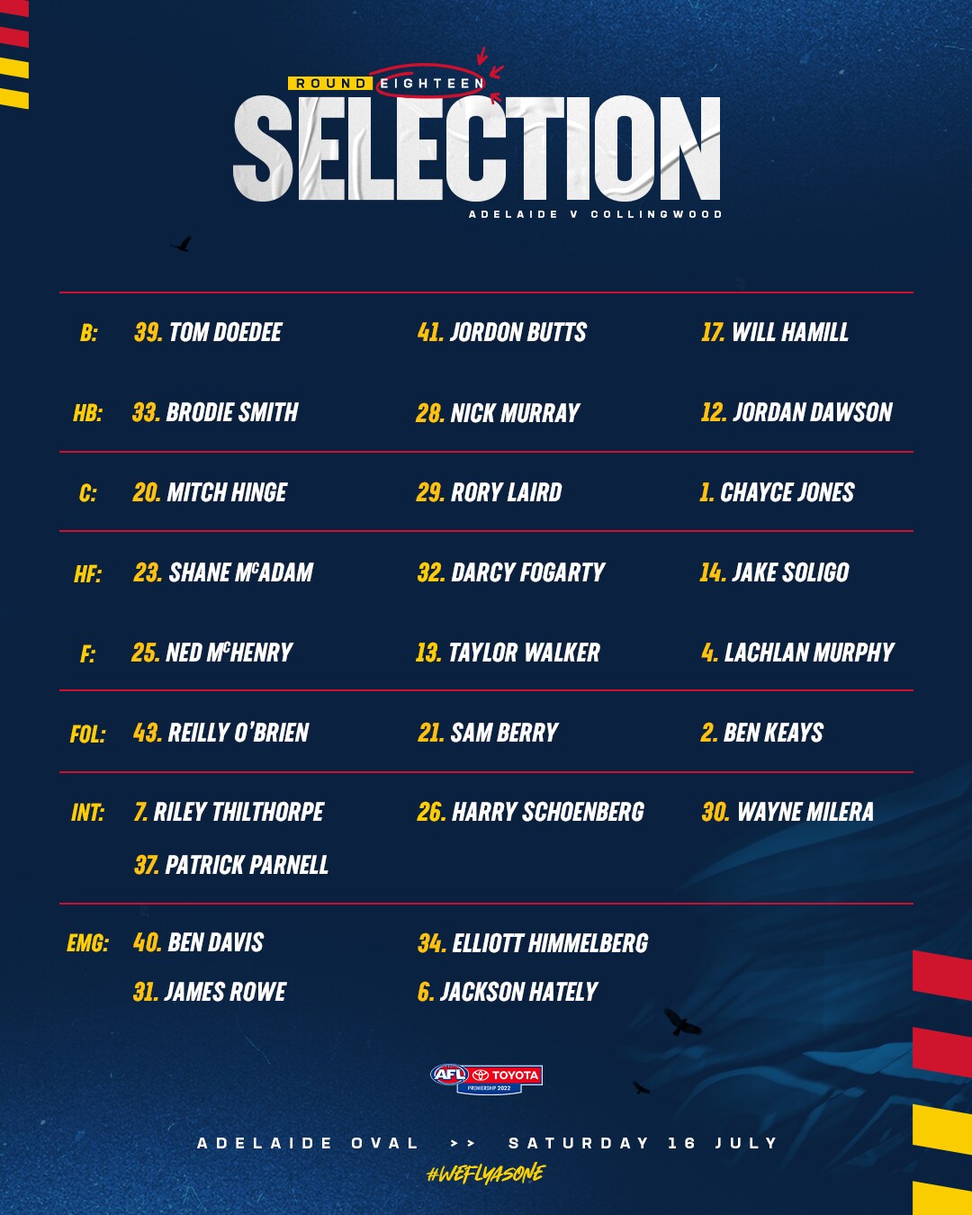 Lachlan Murphy, who served as a travelling emergency against Hawthorn in Round 17, rounds out the inclusions.