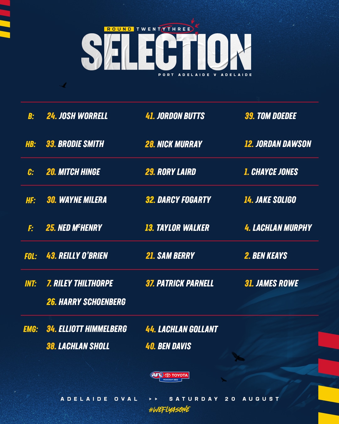 Adelaide’s Round 23 team is: