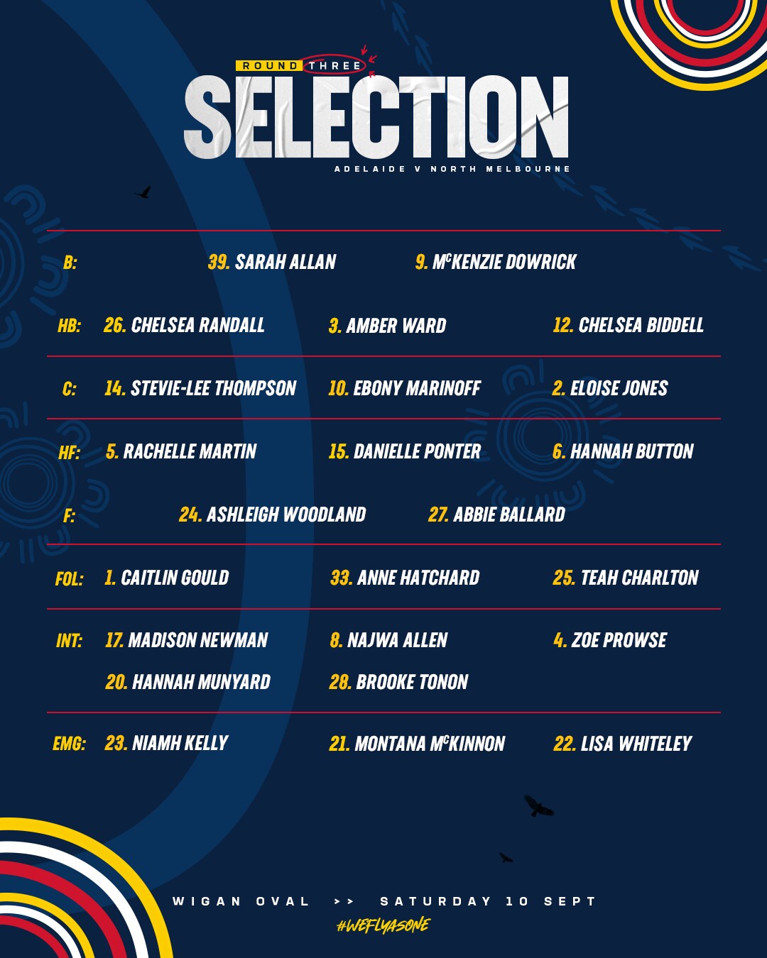 Adelaide’s Round Three AFLW Team is: