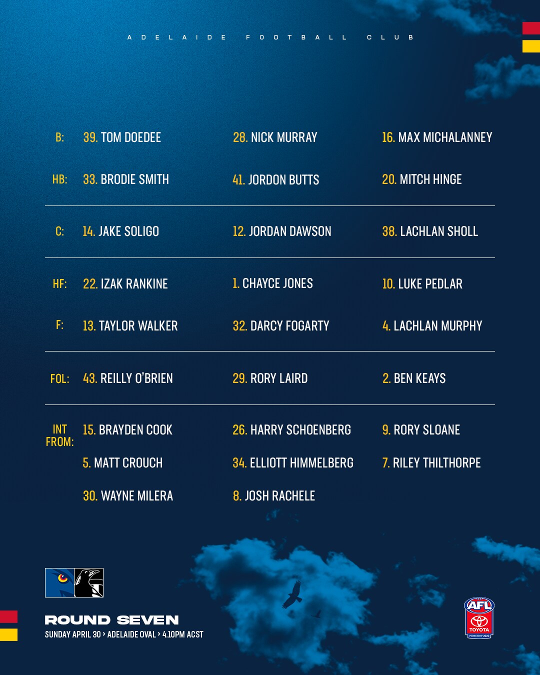 “Ned McHenry, who has been the substitute for the past two weeks with limited game time, will have the opportunity to play a full game at SANFL level this week,” Crows Head of Football Adam Kelly said.