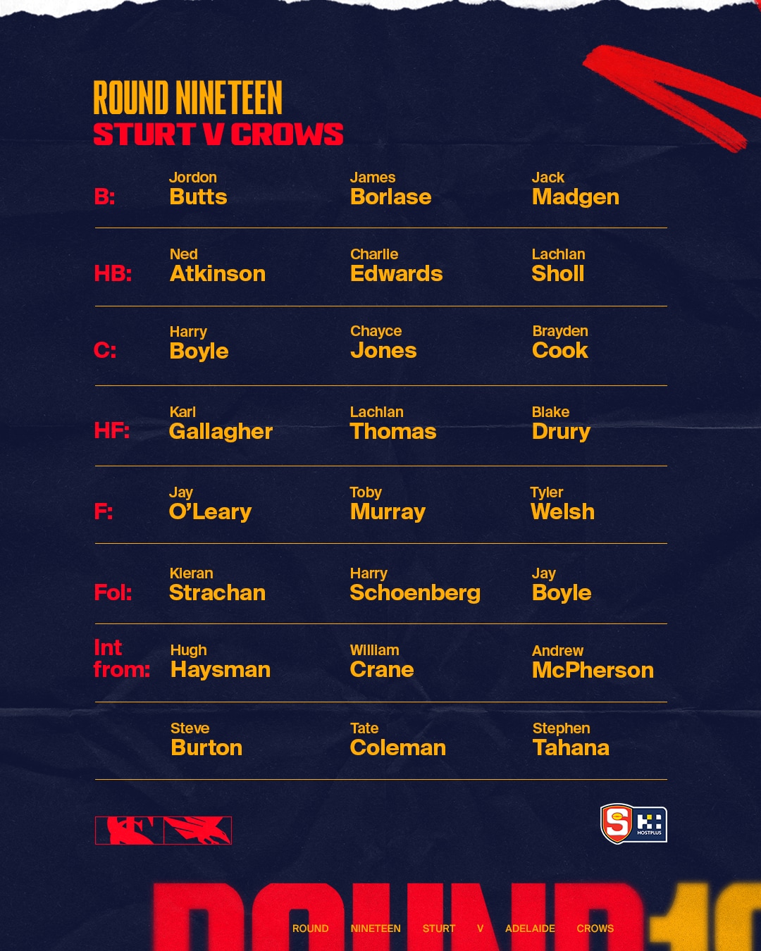 SANFL-listed players Jay O’Leary, Steve Burton, Tait Coleman, and Stephen Tahana have been named in the side.