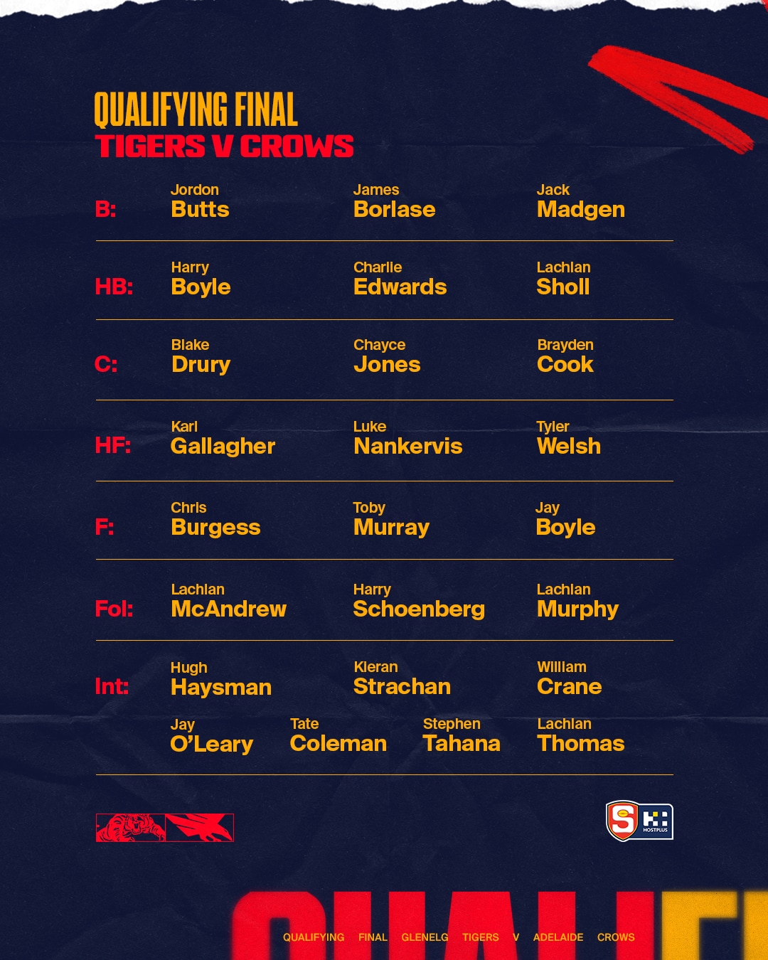 Adelaide's qualifying final team is: