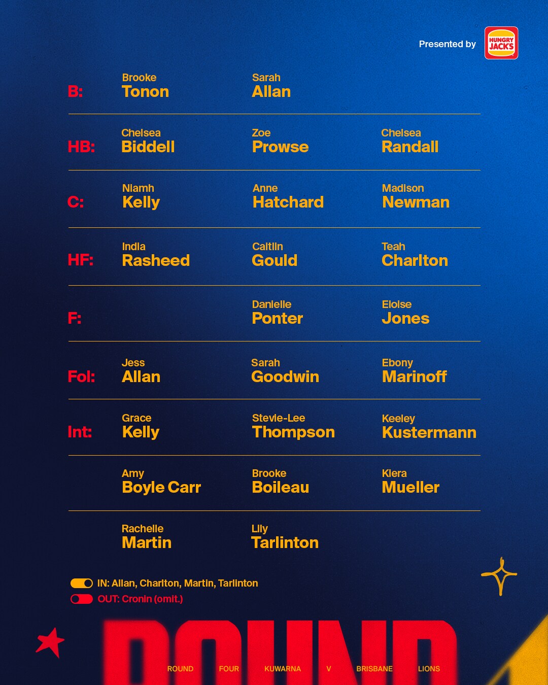 Rachelle Martin and Lily Tarlinton have also been included in the squad, and take their place on the extended bench alongside Grace Kelly, Stevie-Lee Thompson, Keeley Kustermann, Amy Boyle Carr, Brooke Boileau and Kiera Mueller.