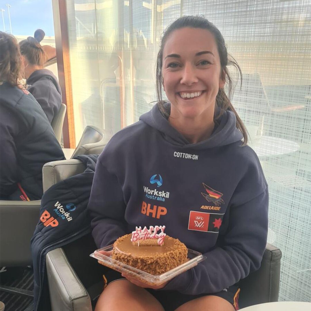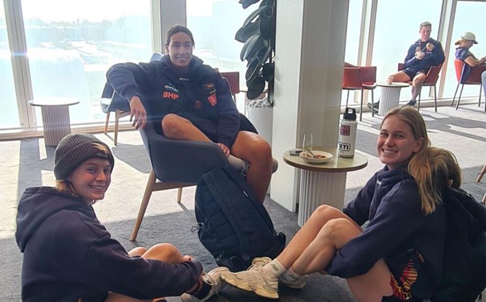 5.15am – About a dozen staff arrive at Adelaide Airport for their flight to Sydney. These staff include the trainers who run the water during game, the team’s dietician, the game integrity officer and AFLW club doctor. Their flight departs at 6am.