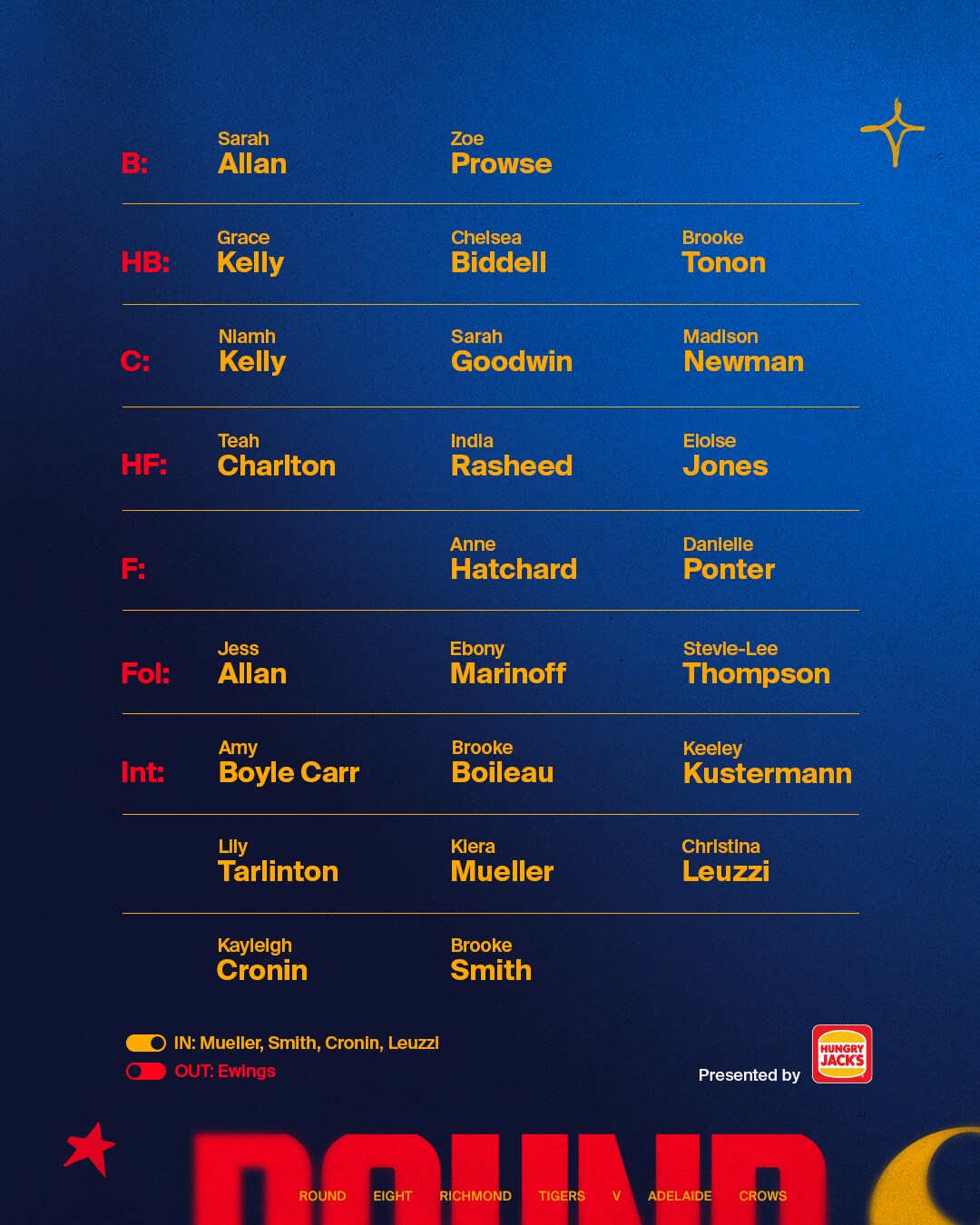 Adelaide’s Round Eight extended squad is: