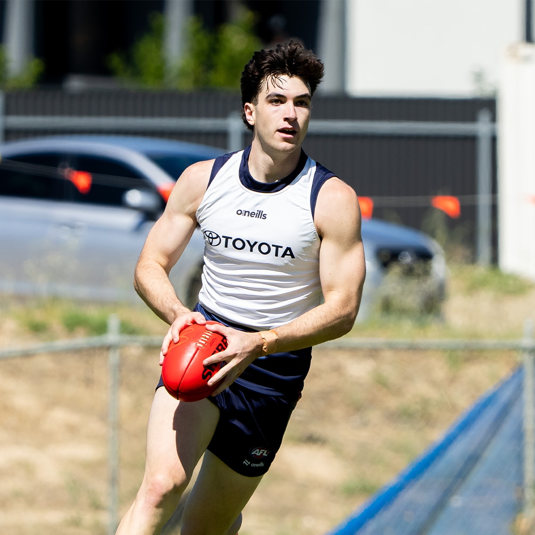 Edwards was selected at the 2023 AFL Draft with Pick No.21 and although drafted as a midfielder, he has honed his craft at half-back across the past 12 months.