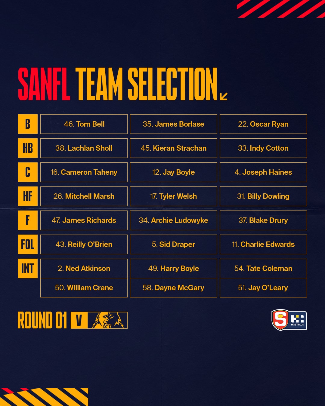 Adelaide’s Round One SANFL team is: